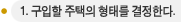 가족의 수, 연령대, 가족구성원의 취미, 여가시간 활용의 방식, 주택의 형태에 대한 가족의 선호도를 감안하여 가족의 여건에 맞는 가장 적합한 형태의 주택을 결정한다. 이 때에 가족이 필요로 하는 필요한 공간(방과 화장실의 수, 홈 오피스 공간 등)을 결정해두고 단독주택의 경우엔 지하실이 꼭 필요한지의 여부와 그 형태(방이 하나라도 더 필요한지 아니면 가족의 여흥 또는 체력단련공간을 위해 트인 공간이 필요할지)를 생각해 둔다. 이 외에도 향후 수년에 걸쳐 재테크 측면에서 유리한 형태를 고려할 수도 있다.