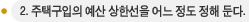자기가 살 주택에 대한 투자는 장기적으로 다른 어떤 재테크 수단보다도 유리하지만, 막상주택을 보러 다니다 보면 아무래도 예산을 늘려 잡게 되는 경향이 있다. 이것이 가계에 부담을 줄 정도로 지나치면 곤란하므로 미리 본인의 자금 여력과 대출가능한 주택모기지 금액을 계산해 둔다.