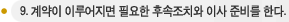 주택구입계약이 이루어지면 계약서의 사본을 모기지 대출기관과 변호사 등에게 제공해야 한다. 중개인이 잔금지불 및 입주 때까지의 모든 절차를 자세히 알려주므로 상의하여 절차에 따르면 된다.