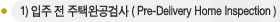 신축주택을 구입한 경우 건축업자가 공사를 완료하면 입주가 언제 가능한지를 알려주며, 입주하기 하루 전쯤에 최종검사 ( Final Inspection )를 한다. 보통 건축업자측 담당자와 입주할 집주인이 함께 주택의 완공상태를 전반적으로 검사한다. 입주자가 검사에 대한 지식이 없으면 홈 인스펙터에게 현장검사를 함께 해 주도록 요구할 수 있다. 하지만, 건축업자가 홈 인스펙터의 동반을 허락하지 않는 경우가 있는데 이 경우에는 입주 후에라도 인스펙션을 한 후 그 결과보고서를 첨부하여 공사하자 보증기간 내에 고쳐주도록 요구하면 된다.