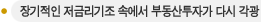 한편, 최근 수년간 계속된 부동산 자산의 가치상승으로 인하여 노후의 안정적인 생활을 위해 임대용 부동산을 구입하려는 수요가 부쩍 많아지고 있다. 게다가 시중의 예금금리가 너무나 낮은 수준에 머물러 있어서 기존 투자용 부동산 보유자들은 매각 후의 다른 대체투자수단을 쉽게 찾기 어려워 매각을 꺼리고 있다. 이로 인하여 이미 가격이 상당 폭으로 올라간 상태인데도 투자용 부동산 매물을 확보하기가 쉽지 않아 투자자들이 대기수요자로 관망하고 있는 상태이다.