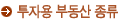 일반적으로 매월 일정한 고정수입을 목적으로 한 투자용 부동산은 크게 주거용 부동산과 상업용 부동산으로 나누어 진다. 주거용 부동산에는 콘도미니엄(콘도)을 비롯하여 둘 이상의 여러 세대가 세 들어 사는 Duplex, Triplex, Multiplex apartments, 그리고 많은 가구수의 임대전용 대형아파트 등이 있다. 상업용 부동산 에는 상가점포, 사무실용 건물, 창고용 건물, 공업용 건물 등이 있다.