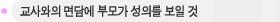 된다. 비록 부모의 의사소통이 원활하지는 안더라도 자녀를 위해 관심을 보이는 모습 그 자체가 교사들에게는 좋은 인상을 주기 때문이다.