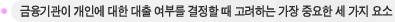그것은 신용(Credit), 소득(Income cash flow)과 담보능력(Mortgage capacity)이다.
