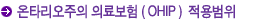 온타리오주의 거주자는 Ontario주의 의료 보험인 OHIP (Ontario Health Insurance Plan)에 가입할 수 있다. 온타리오 주에 3개월 이상 거주한 캐나다의 시민권자나 영주권자면 되며, 일년 중 153일 이상을 온타리오 주에서 지내는 사람이어야 한다.